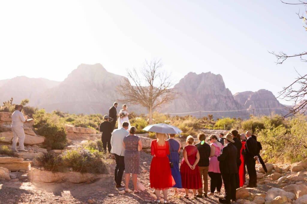 – Having your closest family present for your ceremony but saying vows privately.